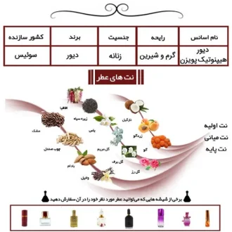 اسانس عطر دیور هیپنوتیک پویزن-Dior Hypnotic Poison عطری است با رایحه ملایم و شیرین. این عطر در سال ۲۰۱۴ به بازار عطر و ادکلن عرضه شد .عطر دیور هیپنوتیک پویزن عطری است زنانه و جادویی.