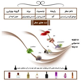 رایحه پایه: چوب صندل-عنبر-مشک-وانیل-گلسنگ-سدر
